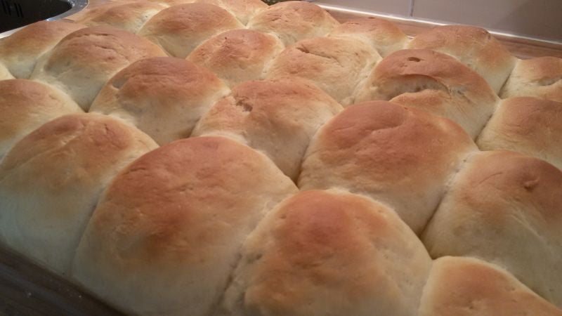 Dus daarom vertel ik het nog maar even, dan weet je wat je straks eet! En wil je liever geen zoete broodjes? Ook geen man overboord: dan laat je gewoon de 110 gram suiker uit het recept weg. Dan krijg je gewone lekkere zachte witte broodjes.