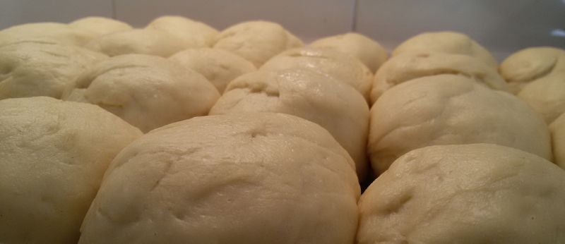- Bestuif je werkblad met bloem en kneed het deeg daarop nog een minuut of twee. Verdeel het deeg daarna in 24 stukken; maak van elk stuk een gladde ronde bal.